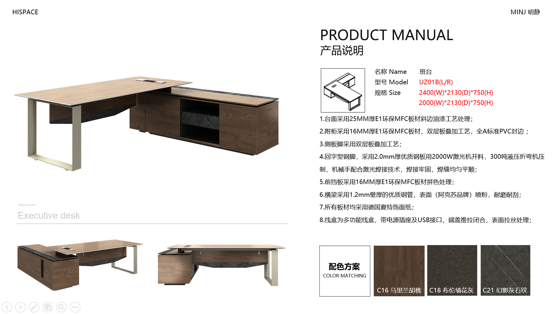 - 回型鋼腳采用板金工藝制作,穩(wěn)重大氣且不失時尚,搭配加厚造型臺面,整體效果簡約而不簡單!