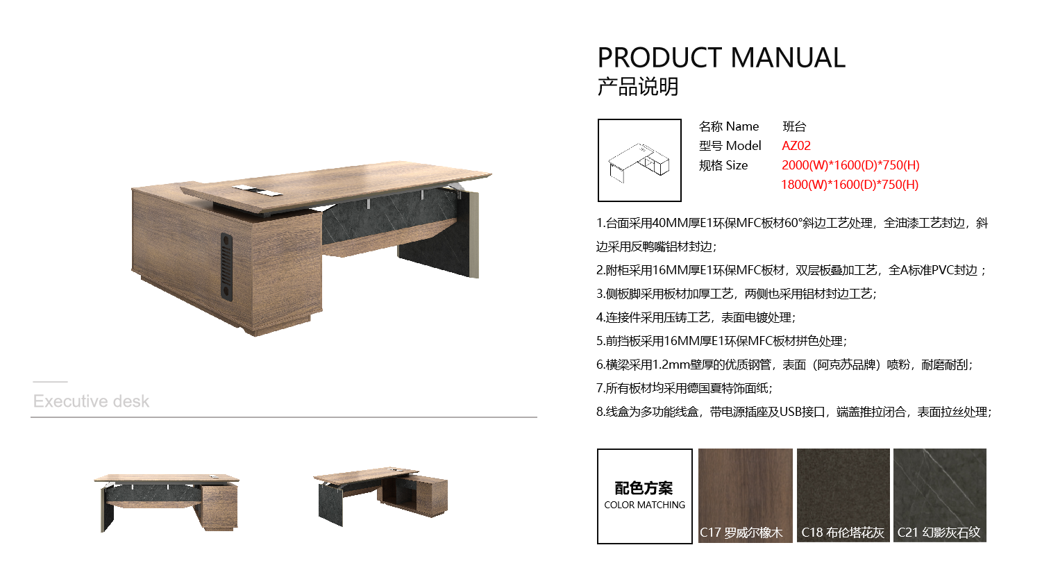 - 臺面采用加厚E1環保MFC板材理,全A標準PVC封邊
